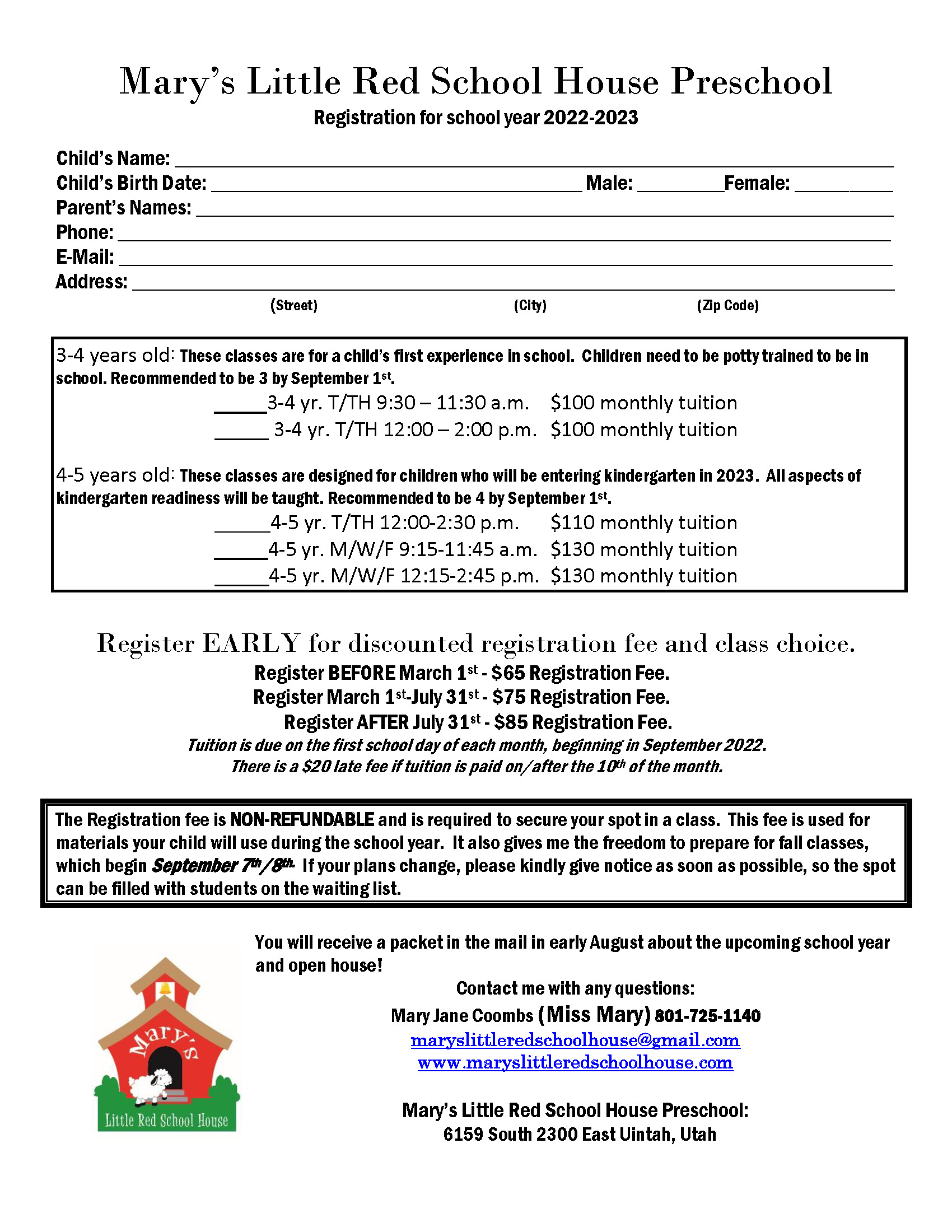 - Available February 1, 2025. The registration fee is NON-REFUNDABLE and is required to secure your spot in a class. This fee is used for materials your child will use during the school year.